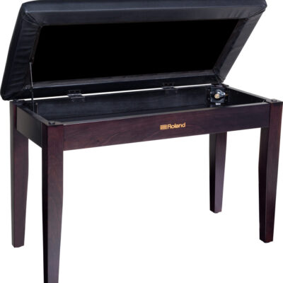 The Roland RPB-D100 is an adjustable-height bench seat for use with pianos and other keyboard instruments. It features a premium polished ebony finish, plus solid wood construction for lasting durability. The seat top is cushioned for comfort during long playing sessions, and lifts to provide access to a storage compartment for sheet music and accessories.